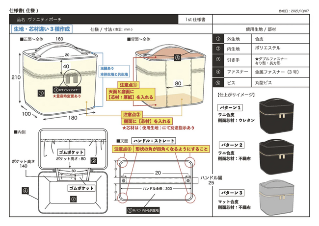 サンプル製作時には発生しなかった不良が量産時に発生する可能性があります。工場での全数検品に向けて、検品時に重視するポイントや基準を書類として残します。