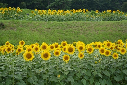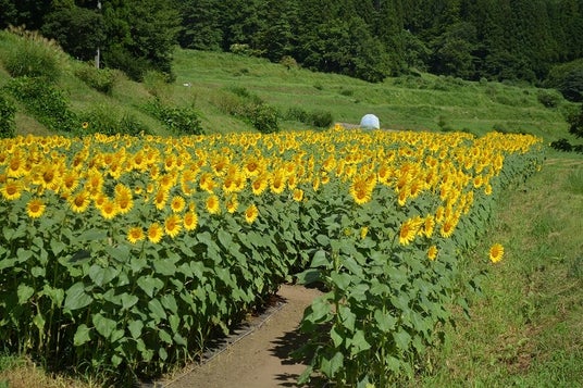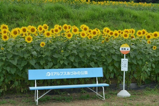 国営アルプスあづみの公園堀金・穂高地区里山文化ゾーンでは、夏のお盆の時期に満開のヒマワリ畑とヒマワリ迷路を楽しむことがでます。棚田に咲くヒマワリは総面積5,000平方メートル あり、見ごたえ十分!また、総延長500mのヒマワリ迷路は、親子で楽しめて夏の良い思い出になっています。ヒマワリは8/11(日)より満開となり、8/18(日)ごろまで楽しめる予定です。