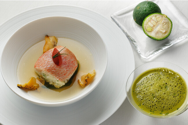 魚料理「キンキのヴァポーレ」×抹茶と柑橘のモクテル