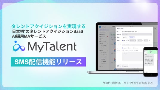 株式会社TalentX(本社:東京都新宿区、代表取締役社長CEO:鈴木 貴史、証券コード:330A、以下「当社」)は、AI採用MAサービス「MyTalent」に「SMS(ショートメッセージサービス)配信機能」を実装したことをお知らせいたします。