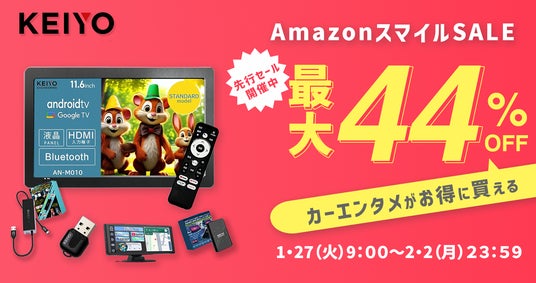 カーライフを楽しく、安全に!KEIYOの動画視聴ガジェットから、エンタメアイテムまで、カーライフを充実させるアイテムがお買い得!