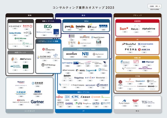 株式会社リブ・コンサルティング(本社:東京都千代田区、代表取締役:関厳)は、企業・組織をまとめた「コンサルティング業界カオスマップ2025」を(以下本カオスマップ)公開致します。