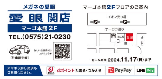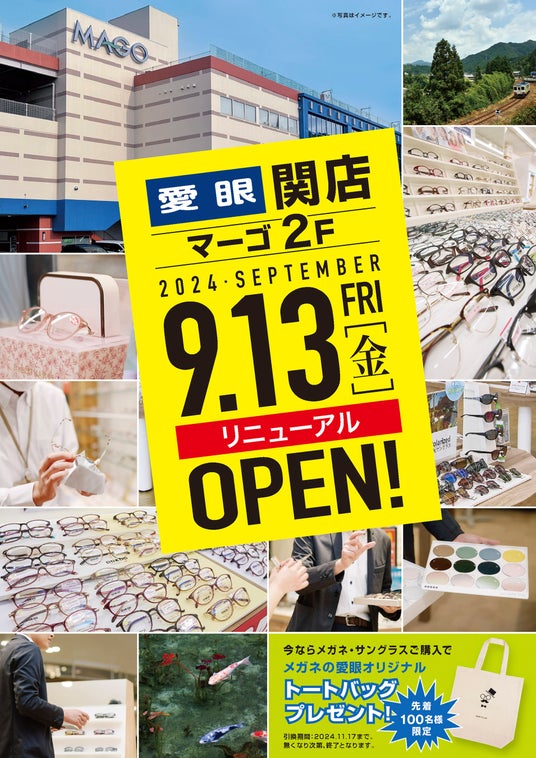 商業施設「マーゴ」本館2Fに「メガネの愛眼 関店」を2024年9月13日(金)、リニューアルオープンしましたことをお知らせいたします。