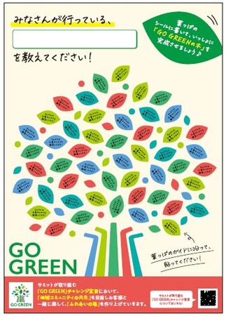 「環境によいこと」「健康によいこと」等、各店舗が決めたテーマに沿って、お客様ご自身が日頃おこなっていることを葉っぱ型のシールにご記入いただき、「GO GREEN」の木のポスターに貼ることで、それぞれの店舗オリジナルの「GO GREEN」の木を完成させます。