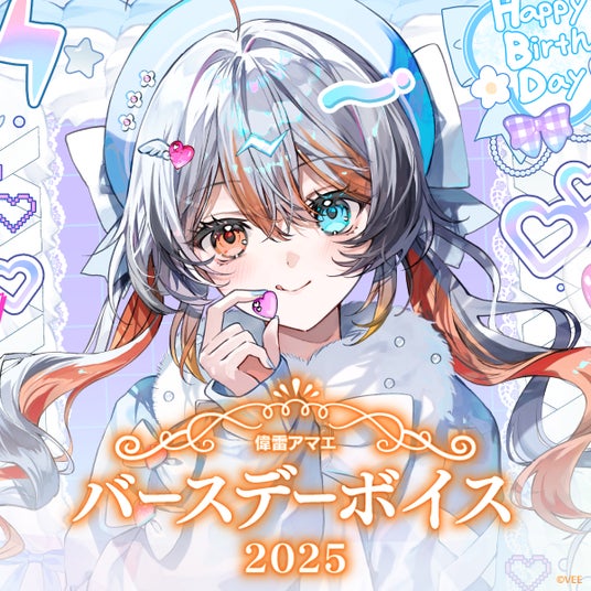 本日・4月26日に誕生日を迎えた偉雷アマエのバースデーグッズの詳細を公開するとともに、公式オンラインショップ「VEE Official Shop」にて受注販売を開始しました。