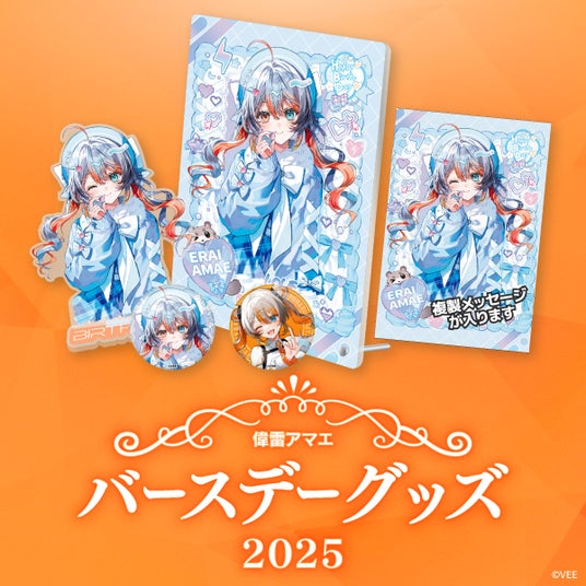 株式会社ソニー・ミュージックエンタテインメント(本社:東京都千代田区、代表取締役社長:村松 俊亮)は、バーチャルタレント育成&マネジメントプロジェクト「VEE」の公式オンラインショップ「VEE Official Shop」にて、所属バーチャルタレント「偉雷アマエ」のバースデーグッズの受注販売を開始したことをお知らせします。