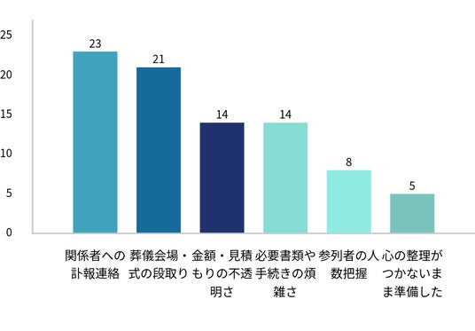 【グラフ】葬儀を行うにあたり、どのようなことに最も困りましたか?(単位%)