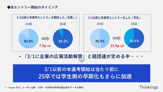 「sonar ATS」ユーザー企業の約9割が3/1以前に本選考エントリー開始