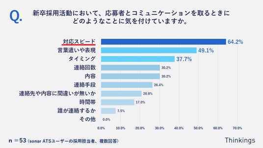 企業が応募者とコミュニケーションを取るときに気をつけていることは「対応スピード」