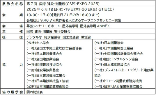 総合建設機械レンタルの株式会社アクティオ(本社:東京都中央区日本橋、代表取締役社長兼COO:小沼直人、以下アクティオ)は、2025年6月18日(水)~21日(土)の4日間、幕張メッセで開催される建設業界、測量業界の展示会「第7回 国際 建設・測量展(CSPI-EXPO 2025)」に出展いたします。