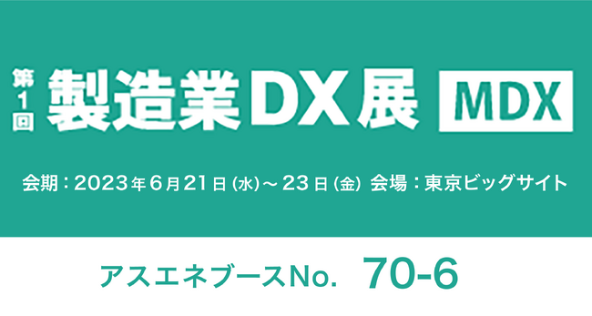 アスエネ株式会社(本社:東京都港区、代表取締役CEO:西和田 浩平、以下「当社」)は、6月21日(水)~6月23日(金)に東京ビッグサイトで開催される「製造業DX展【東京】」に出展します。当社ブースでは、CO2見える化・削減・報告クラウド「アスゼロ」の紹介をします。