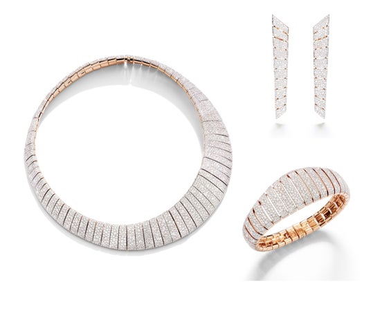 Cesar Pelliによる象徴的なミラノ建築の流れるような曲線にインスピレーションを受けたチョーカーは優雅に波打ち、ゴールド使いを極めたポメラートとしての技術を証明しています。