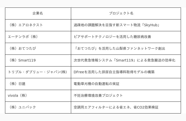 本事業第6期の実施にあたり、「テストベッド(※)の聖地やまなし」として、全国のスタートアップ企業等からの社会実証プロジェクトを本日より募集いたします。