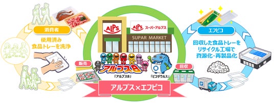 株式会社エフピコ(本社:東京都新宿区、代表取締役会長:佐藤 守正、以下「エフピコ」)と株式会社スーパーアルプス(本社:東京都八王子市、代表取締役:松本 英男、以下「スーパーアルプス」)は協働し、スーパーアルプスが運営する29店舗を対象に、お店の店頭で回収された使用済み食品トレーを、新しい食品トレーへと生まれ変わらせる「トレーtoトレー」に取り組んでいます。そして、この取り組みを通じて再生された「エコトレー」などのエコ製品を、再びスーパーアルプスのお店で積極的に使用する「ストア to ストア」の水平リサイクル*をさらに進めていきます。