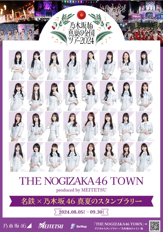 名古屋鉄道は、乃木坂46が5年ぶりに全国のドーム会場で開催する「真夏の全国ツアー」愛知公演(8月24日・25日開催)に合わせて乃木坂46とコラボレーションし、ライブ開催地をアーティストと共に盛り上げる「THE NOGIZAKA46 TOWN produced by MEITETSU」を開催します。