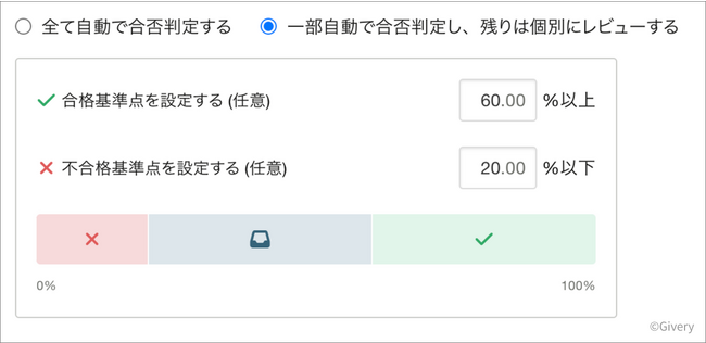 株式会社ギブリー(本社:東京都渋谷区、代表取締役社長:井手高志、以下ギブリー)が展開する国内No1*のコーディングテストツール「Track Test(トラック・テスト)」は、選考のテスト結果で「合格者」「レビュー対象者」を絞り込むことができる「合格者の自動振り分け機能」をリリースしました。この機能は、1年間に1000件以上の採用試験が提出される大規模採用企業の課題に着目して開発したもので、合否判定にかかっていた時間を削減します。