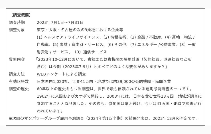 マンパワーグループ雇用予測調査 詳細は、こちらのURLからご確認ください。