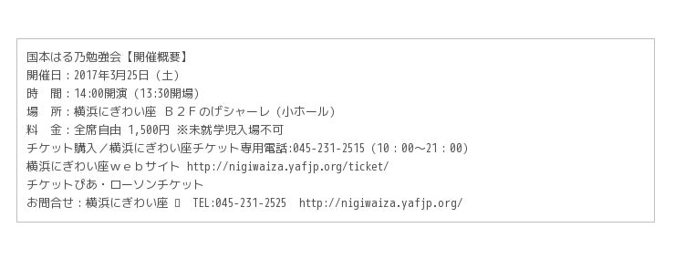 3月25日、横浜にぎわい座が若手を応援する登竜門シリーズ に、21歳の浪曲師・国本はる乃が初登場。