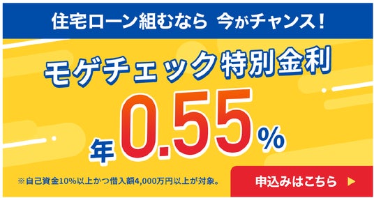 住宅ローン比較診断サービス「モゲチェック」を運営する株式会社MFS(本社:東京都千代田区、代表取締役CEO:中山田 明、以下「MFS」)は、金融機関と連携してモゲチェックの住宅ローン診断を受けたユーザーに対して、年0.55%(変動金利)の特別商品を案内します。本商品は、借入金額4,000万円以上で物件価格の9割以内の融資であり、住宅ローン診断で一定の融資承認確率のユーザーに限定して、2025年7月1日から案内します。