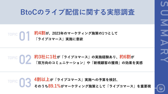 約4割が、2023年のマーケティング施策の1つとして「ライブコマース」実施に意欲