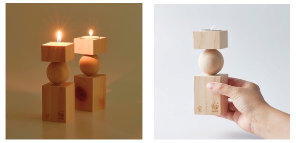 WWFジャパン公式オンラインショップ「PANDA SHOP(パンダショップ)https://shop.wwf.or.jp/ 」では、EARTH HOUR 2024に寄せて、山梨県産の認証材を使用した、ヒノキのキャンドルスタンドを販売しています。木製のやさしい質感と米ぬか蝋の天然素材で環境負荷を考慮した逸品です。心地よいキャンドルの灯に癒されながら、地球を想うひと時を過ごしませんか。