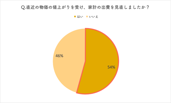 ウクライナ情勢、円安の影響による物価の上昇を受け、回答者の54%が「生活費を見直した」と回答しました。