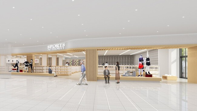 新コンセプト店舗1号店となる『スポーツオーソリティ豊川店』では、ファミリー層からシニア層まで幅広いお客さまに和みながらお買い物していただけるよう「和」の雰囲気を大切にし、お客さまが気軽に立ち寄れる「縁側」をモチーフとした象徴的なデザインを店頭に施し、お店の「内」と「外」をつなぎ様々な世代のお客さまが寛ぎながらショッピングやコミュニケーションを楽しめる居場所になる空間を目指します。