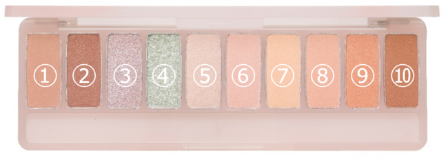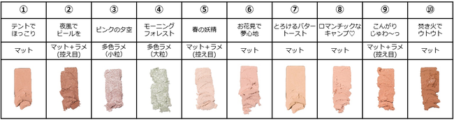 あたたかいパステルカラーの10色で、オリジナルの煌めきメイクが完成します。