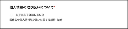 寄付者の個人情報の取り扱いに関する同意を得るための項目も追加できます。寄付者のデータ保護を徹底し、信頼感の醸成に貢献します。