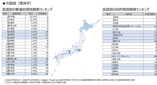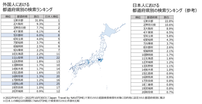 2022年9月1日~10月30日に『Japan Travel by NAVITIME』を利用された方を対象に集計をしています。