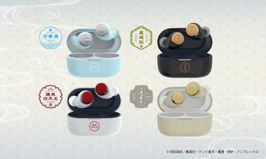 それぞれのモデルには、イヤホンの操作をアシストしてくれる「システムボイス」と、劇中の名言を再現した「ランダムボイス」を完全新録で搭載!計360種類以上の録り下ろしボイスを楽しむことができます**。