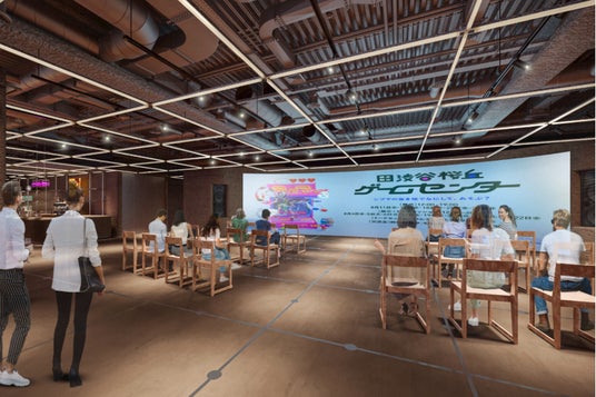 約150平方メートル のフロアには幅10m超のLEDが設置されたイベントスペース物販・カフェスペース、キッチン&レストランスペース、配信スタジオが展開されクリエイターのジャンルにとらわれない創作活動を実現していきます。