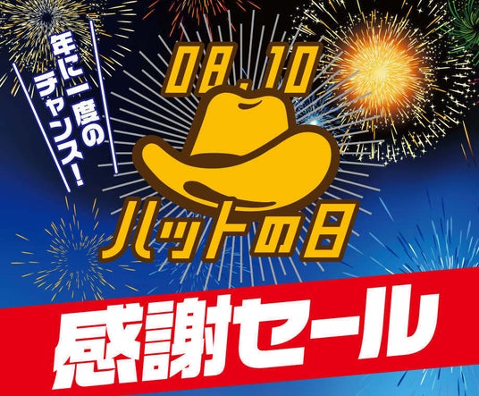 8月9日(金)~8月18日(日)の期間、年に一度の「ハットの日感謝セール」を実施。「ハットの日感謝セール」では、ハットの日記念として、洗車用品など810円の特価商品をご提供、他にもお買物でオリジナルグッズのプレゼントなどを実施予定。詳しくは8月9日AM9:00公開の「ハットの日感謝セール」特設サイトをご確認ください。