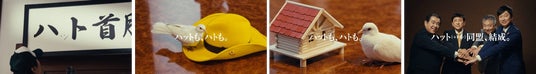 「ハット首脳会談2024ハト篇」では、例年通り社名の“ハットの意味”を各社が説明。一通り説明が終わったところで、イエローハットが出した帽子がごそごそと動き出します。帽子を動かすと、一羽のハトが登場。ハトが頭上を飛び回り、気を取られている間に、『ハット首脳会談』の額が、引越しスタッフの登場により『ハト首脳会談』に替えられ、あっけにとられる首脳たち。すると、ハトのマークの引越センターが登場し「うちのハトは、引越しです」とハトの意味を説明。「8月10日は“ハトの日”でもありますから」と告げると、ハット社の首脳らは戸惑いを隠せず何度も「ハット…」と正そうとしますが、帽子の上にハトがとまった様子をみて、思わず笑みがこぼれ、和解ムードに。無事、ハット+ハト同盟が結成されるのでした。