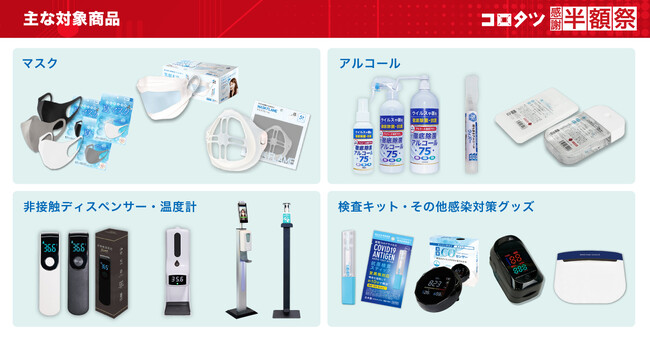 完全特注オリジナルグッズの企画生産を手がけるアイグッズ株式会社(本社:東京都渋谷区)は、運営する「コロタツ」の3周年を記念して、マスク・アルコール・ディスペンサー・検査キット・アクリルパーテーションなどのコロナ対策グッズを対象にした「コロタツ感謝半額祭」を開催します。