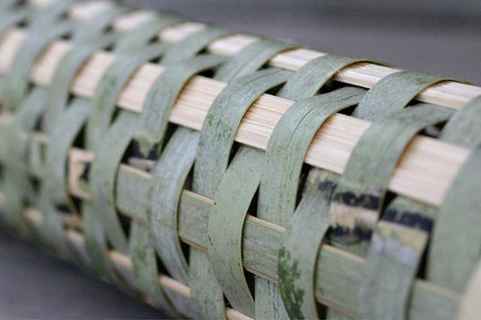 特筆すべきは、「竹表皮のみを使用する製法」です。この製法は若手職人による提案により実現したもので、従来のように二番ヒゴ、三番ヒゴといった内側部分を併用するのではなく、強度と耐久性に優れた竹表皮のみを使用する仕様へと移行しています。