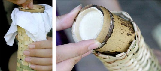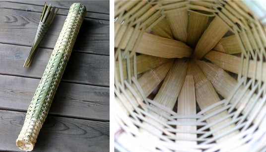 鰻筌は、基準となる竹筒のサイズに合わせて一つひとつ手作業で編み込まれており、熟練の技が求められる製品です。また、片方には鰻が一方向にしか進めない「エギ(またはコジタ)」と呼ばれる仕掛けが取り付けられ、反対側は木や竹で栓をして使う構造となっています。