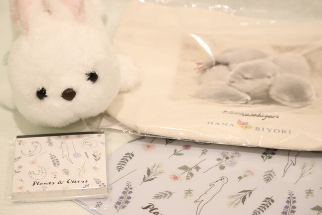 HANA・BIYORIオリジナルの文房具やコツメカワウソグッズが入ったお得な福袋です。ぬいぐるみは、うさぎ・コツメカワウソのうち1つを選べます。