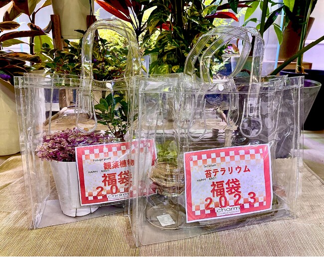 観葉植物の販売や苔玉づくりのワークショップなどを開催している専門店「shop charm」で、大人気の苔テラリウムや観葉植物が自宅で楽しめる福袋を販売します。