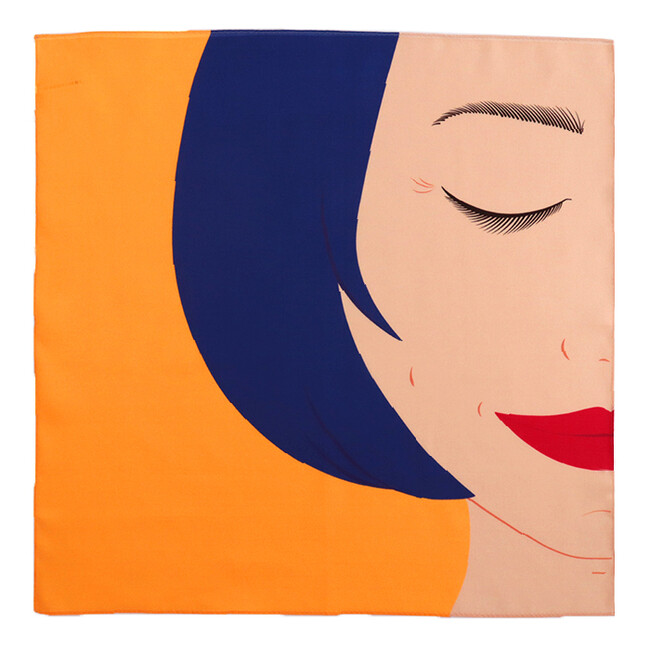 審査員講評:スマイルをいろんな角度で捉えられる。この人は「どんなスマイルをしていて、どんな気持ちなんだろう」と、想像する楽しさがある。それは半分の顔しか描いていないからだろうと思い、そういう広がっていく感じが良いなと思いました。完成度が高く、空想が広がる構図であり、色の構成も綺麗で、ハンカチとしても絵としても美しい作品です。