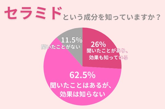 調査の結果、88.5%の女性がセラミドという名前を聞いたことがあることが明らかになりました。また、26%の女性が効果も知っている、と回答されました。