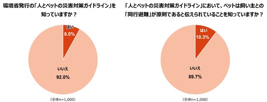 ◆「人とペットの災害対策ガイドライン」、「同行避難の原則」を知らない人は約9割と、浸透の途上