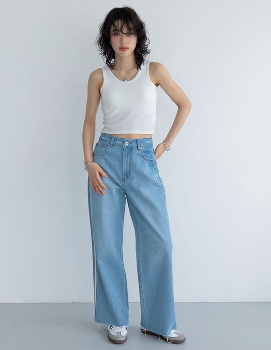 クロップド丈が、スタイリッシュな女性らしさと、トレンド感を演出します。