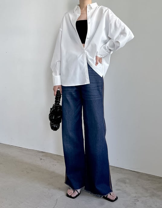 肩を出すことで、女性らしい印象を与え、なおかつトレンド感を高めます。