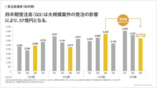 四半期受注高は大規模案件の受注の影響により、3,712百万円となりました。