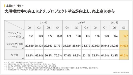 当四半期は、大規模案件の完工により、プロジェクト単価が向上し、売上高に寄与しました。
