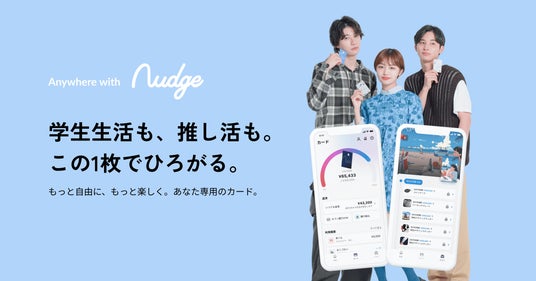 ナッジは、「ひとりひとりのアクションで、未来の金融体験を創る」をミッションに、より便利で楽しく、自然に使いたくなる金融サービスを提供するFinTech企業です。高校生を含む18歳以上なら誰でもお申し込みいただける「ナッジカード」は、ユーザーの約75%がZ世代を占めるなど、若年層にも広く支持されています。今後もオープンイノベーションを通じて、日本におけるチャレンジャーバンクを目指し挑戦を続けてまいります。