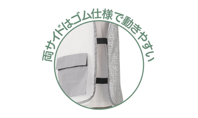 両サイドはゴム仕様で身体の動きを妨げずに、快適な作業を行うことができます。