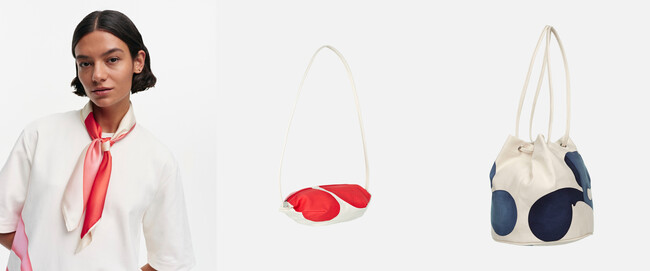 今回登場するのはワンピースやブラウスなどのウェアとバッグやスカーフなど計9型。無駄のない洗練されたシルエットがランドン・メッツのアートの魅力を最大限に惹き出すキャンバスになります。