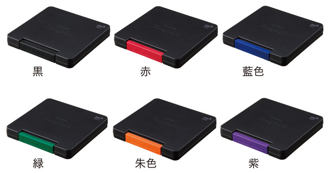 大きな丸型や角型のゴム印もキレイに押せる、100×100mmの盤面サイズです。インキも黒・赤・藍色・緑・朱色・紫の6色をご用意しました。